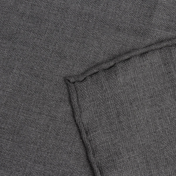Finished with hand-rolled edges in our design studio, presented in a significant grey herringbone.
