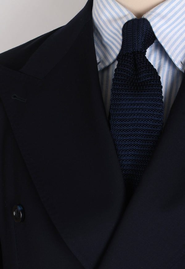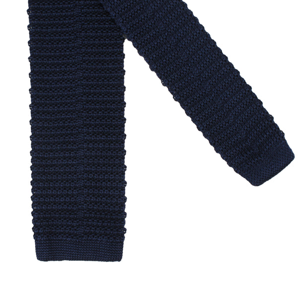 This knitted tie is designed to offer a refined and understated look. Crafted from carefully selected silk, its deep navy colour provides a distinctive yet subtle expression.