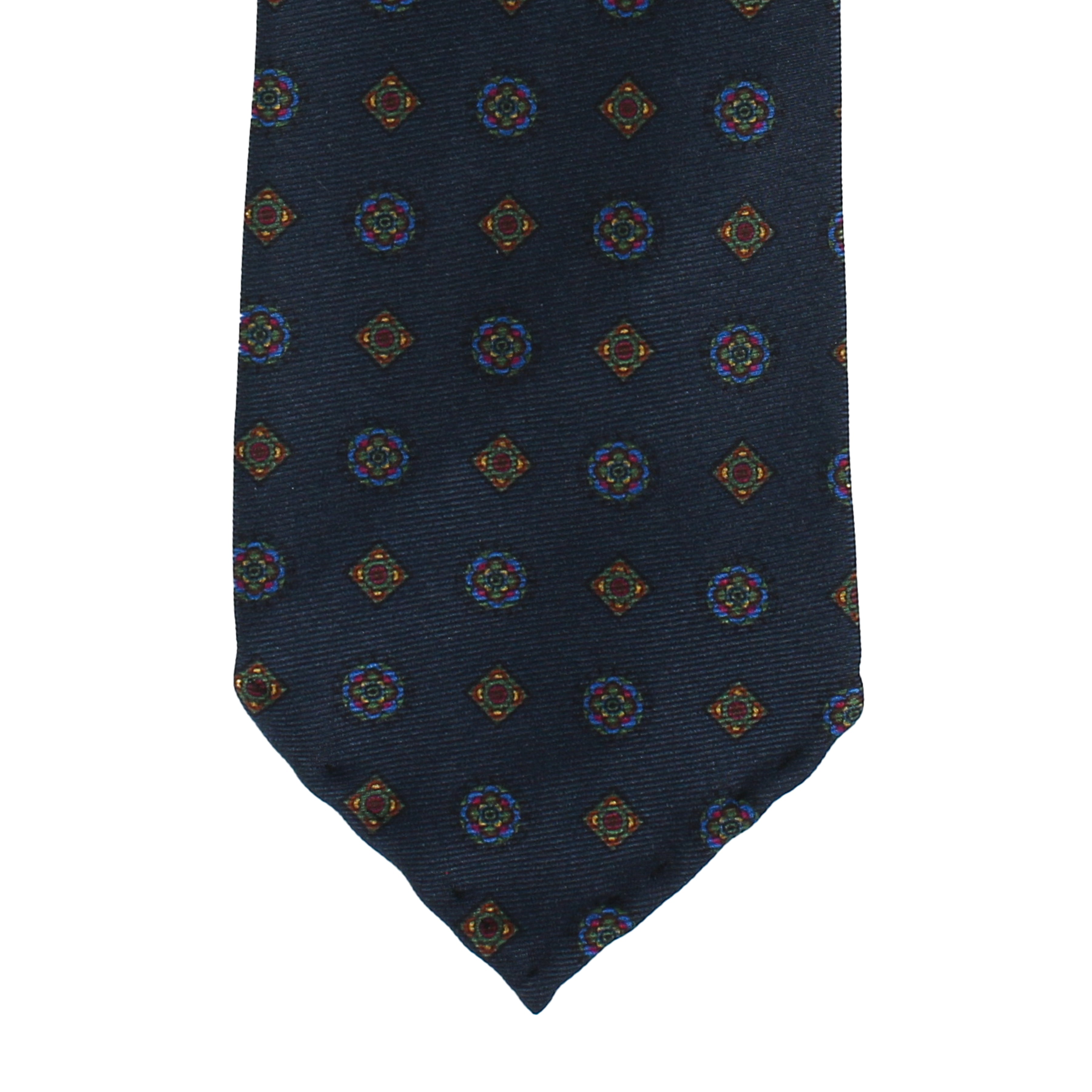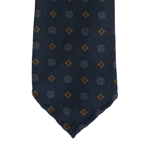 Made using the traditional seven-fold construction technique for exceptional drape and weight, and presented in a rich brown silk with an elegant floral motif.