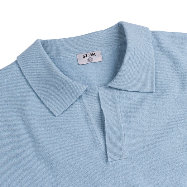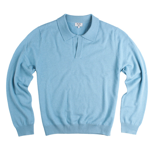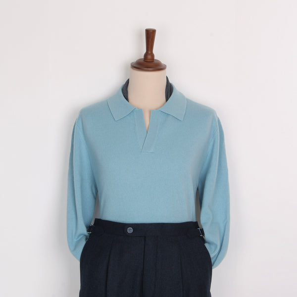 Open Collar Sweater - Light Blue Merino Wool