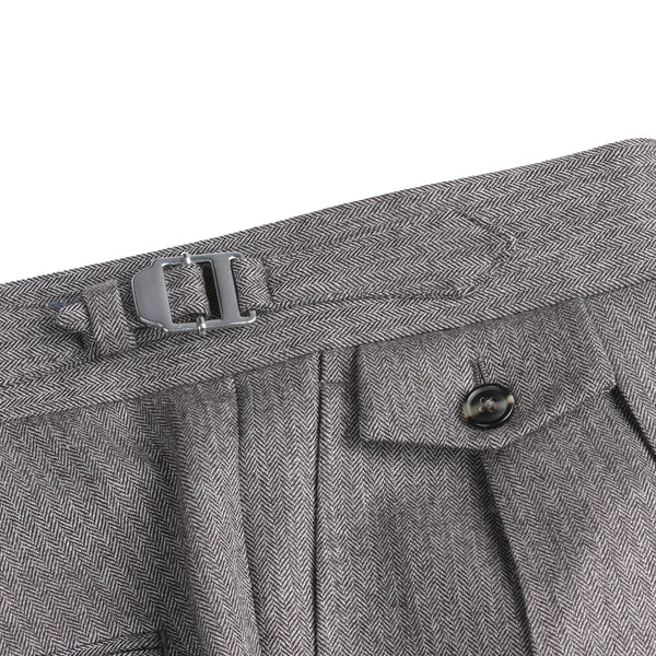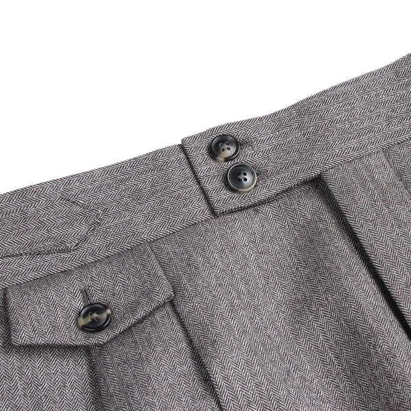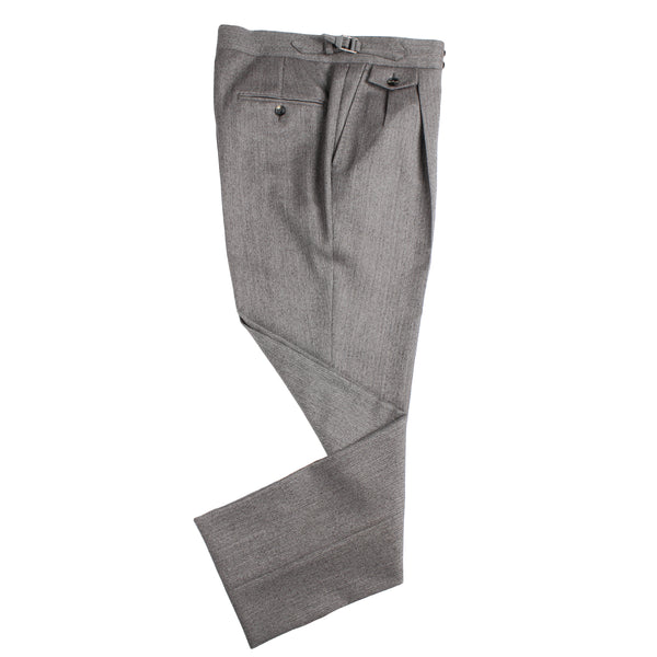 Our trousers are made with a tailored cut and a high waist, designed to be worn at the waist with double pleats for comfort.