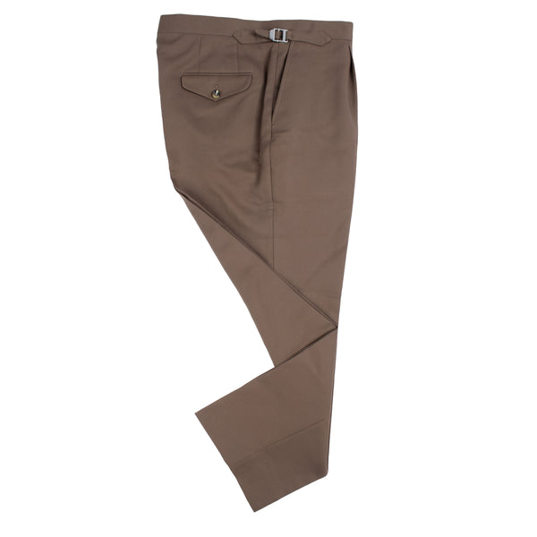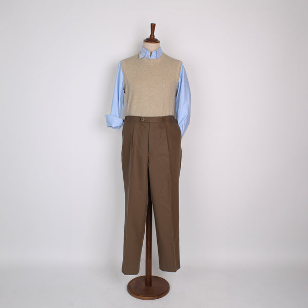 Our trousers are made with a tailored cut and a high waist, designed to be worn at the waist with single pleats for comfort.