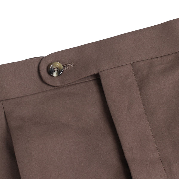 Our trousers are crafted from woven cotton, presented in a brown shade.