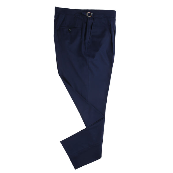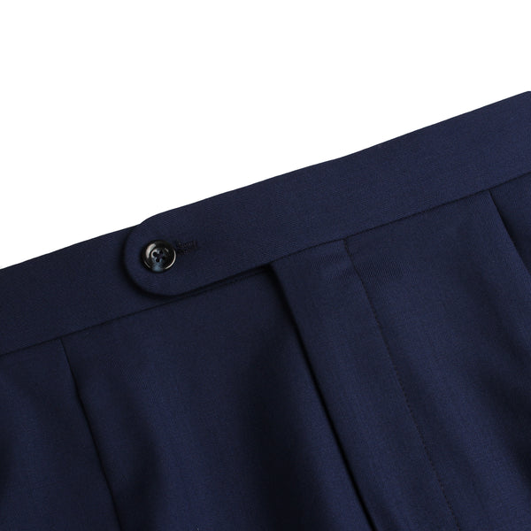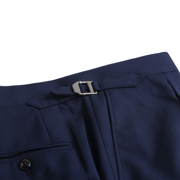 Our suit trousers are made in a light Super 140's Wool, presented in a navy twill.